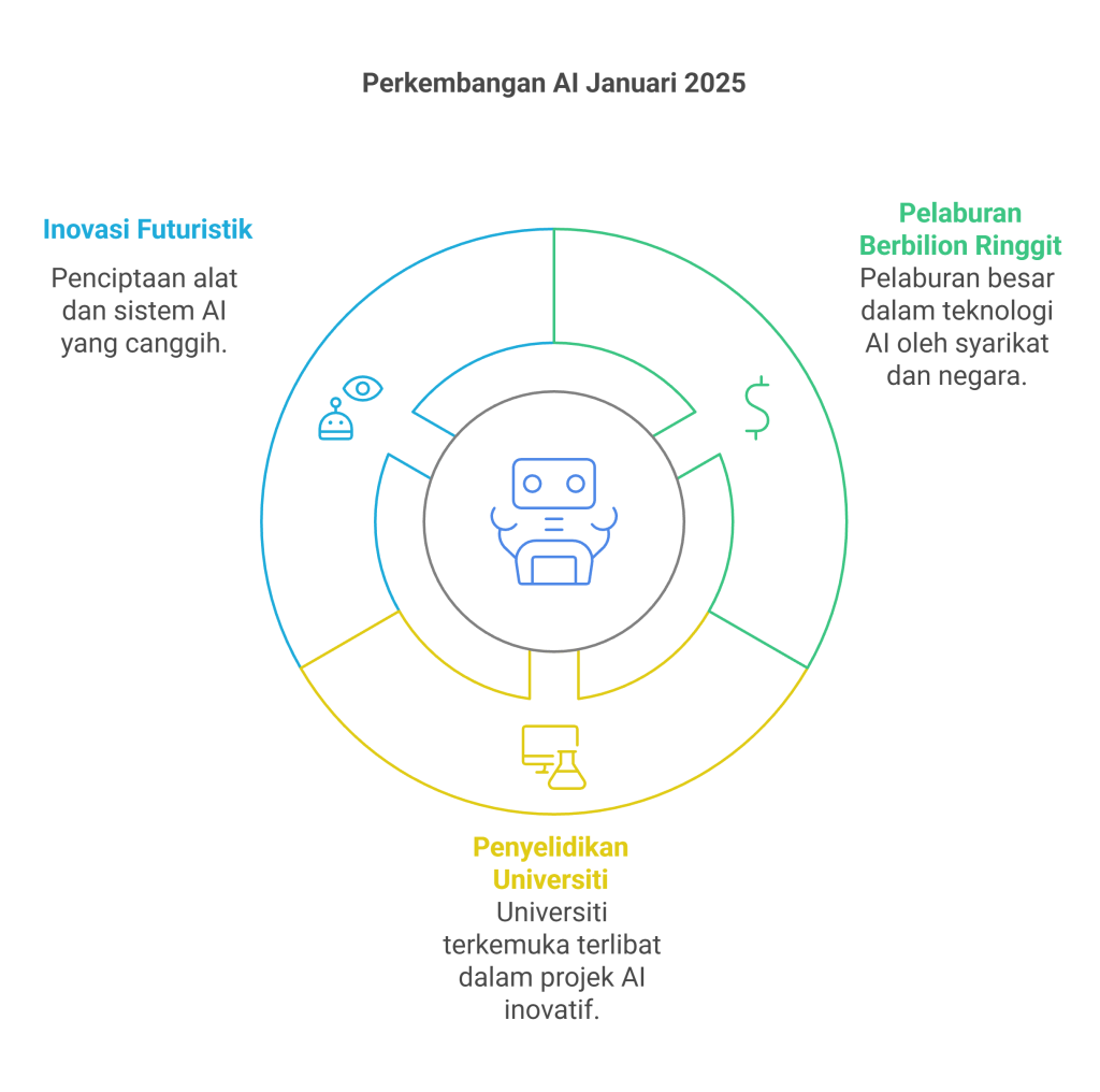 Mungkin korang perasan trend ini di media sosial, di pejabat, atau semasa lepak dengan kawan. Jangan risau—memang banyak perkara menarik berlaku! Dalam minggu 6 hingga 12 Januari 2025, muncul pelbagai berita hangat tentang AI, termasuk pelaburan berbilion ringgit, kajian universiti terkemuka, dan inovasi yang nampak macam “futuristik gila.” Mari kita sama-sama tengok apa yang sedang berlaku, kenapa ia penting, dan bagaimana kita boleh ambil manfaatnya.