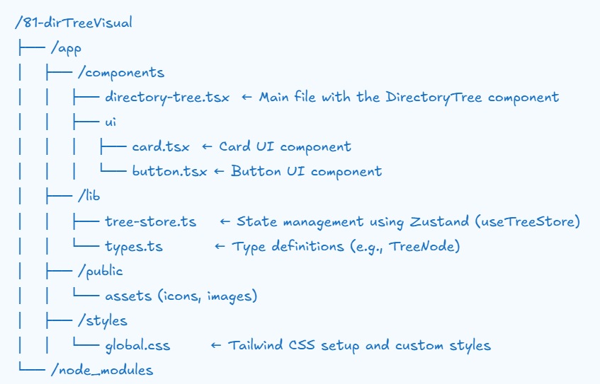 • TreeStore (Zustand): Manages directory state.