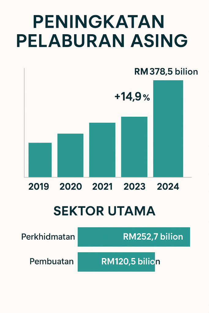 ✅ Majoriti pelaburan adalah dalam sektor perkhidmatan (RM252.7 bilion) dan pembuatan (RM120.5 bilion).
